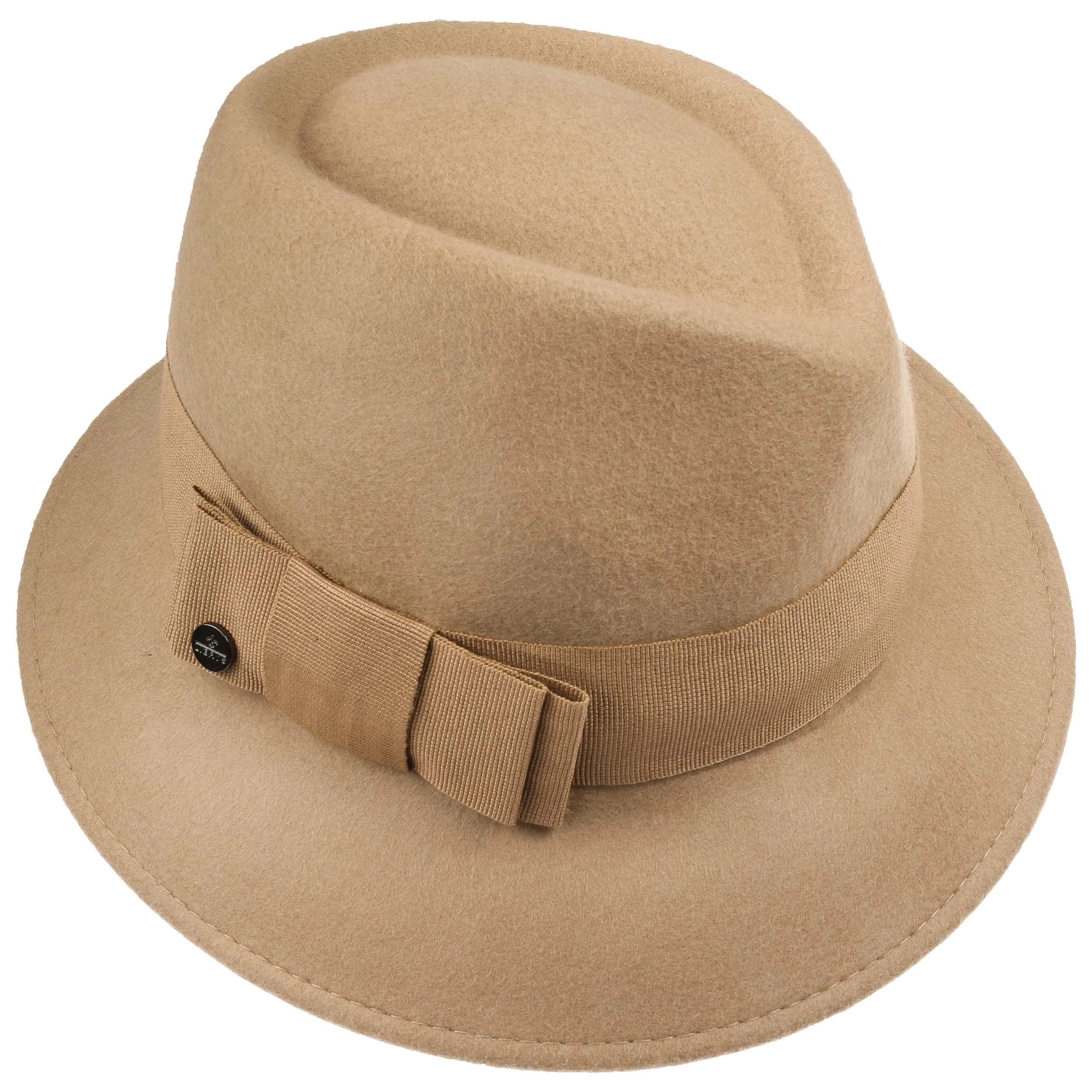 Für eine feminine Ausstrahlung hat sich der Damentrilby mit einer farblich abgestimmten Schleife aus Ripsband geschmückt. Das einfarbige Design lässt sich hervorragend zum Kostüm, zum Kleid oder auch zur Jeans kombinieren. Derweil verwöhnt 100% Wollfilz den Kopf mit leichten, wärmenden Trageeigenschaften.