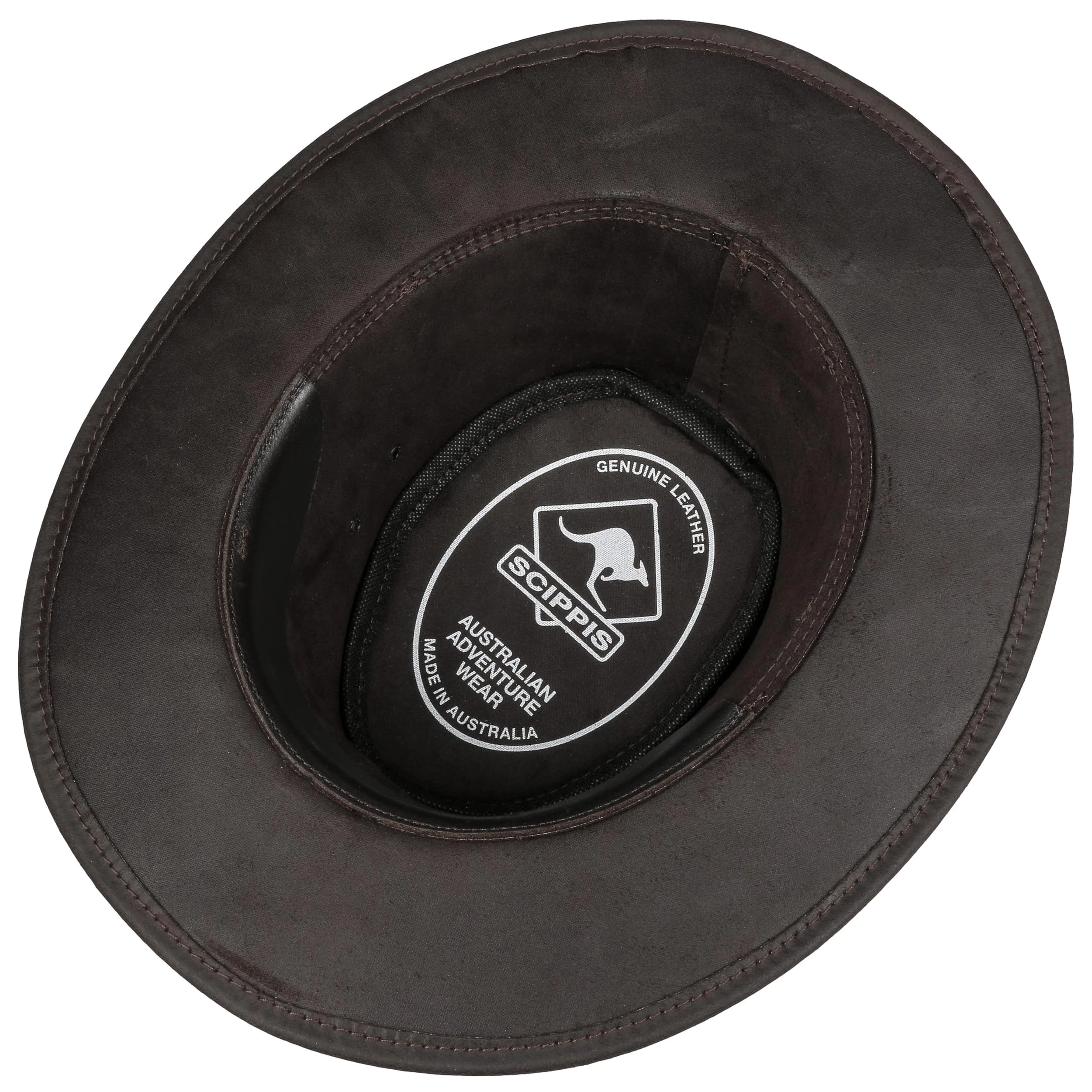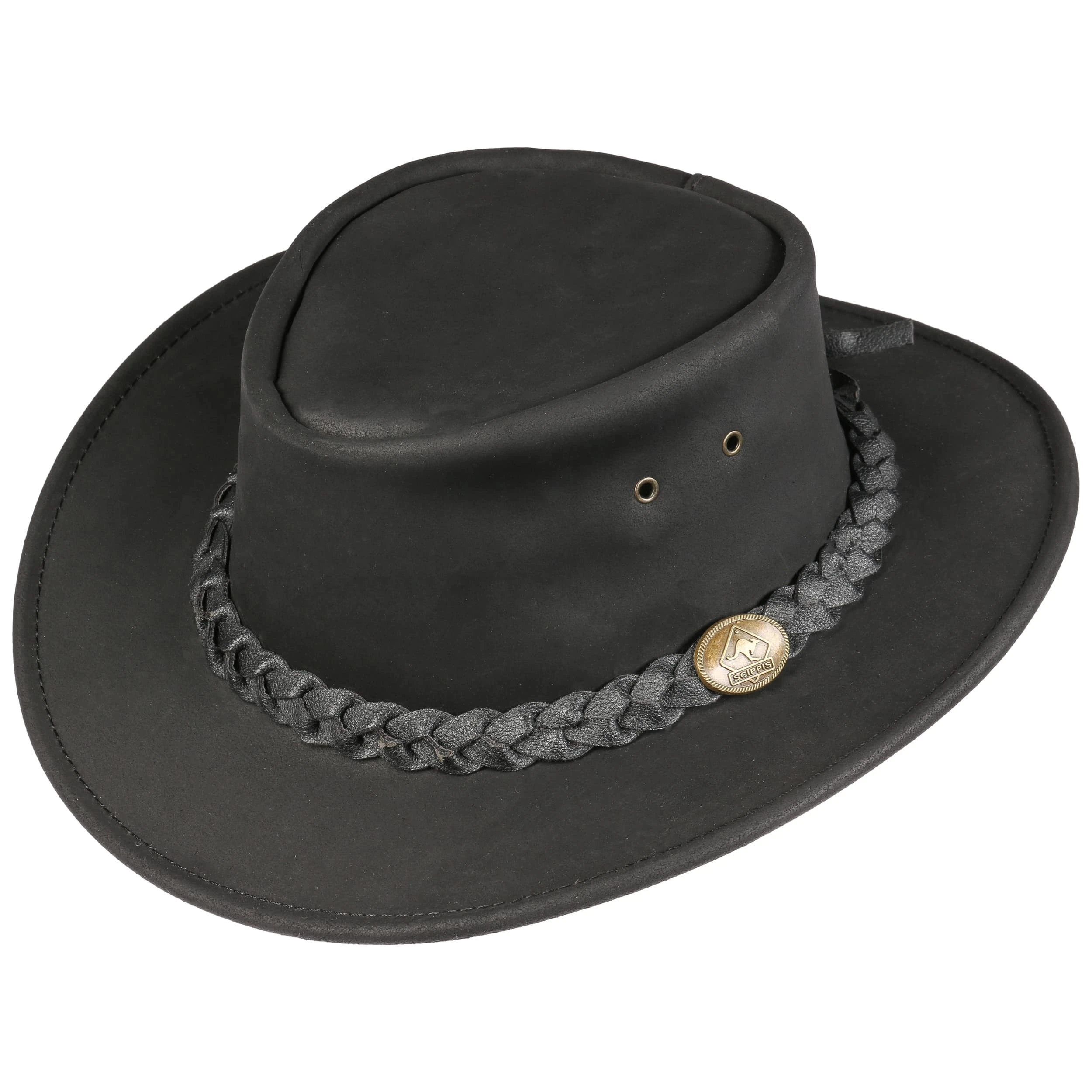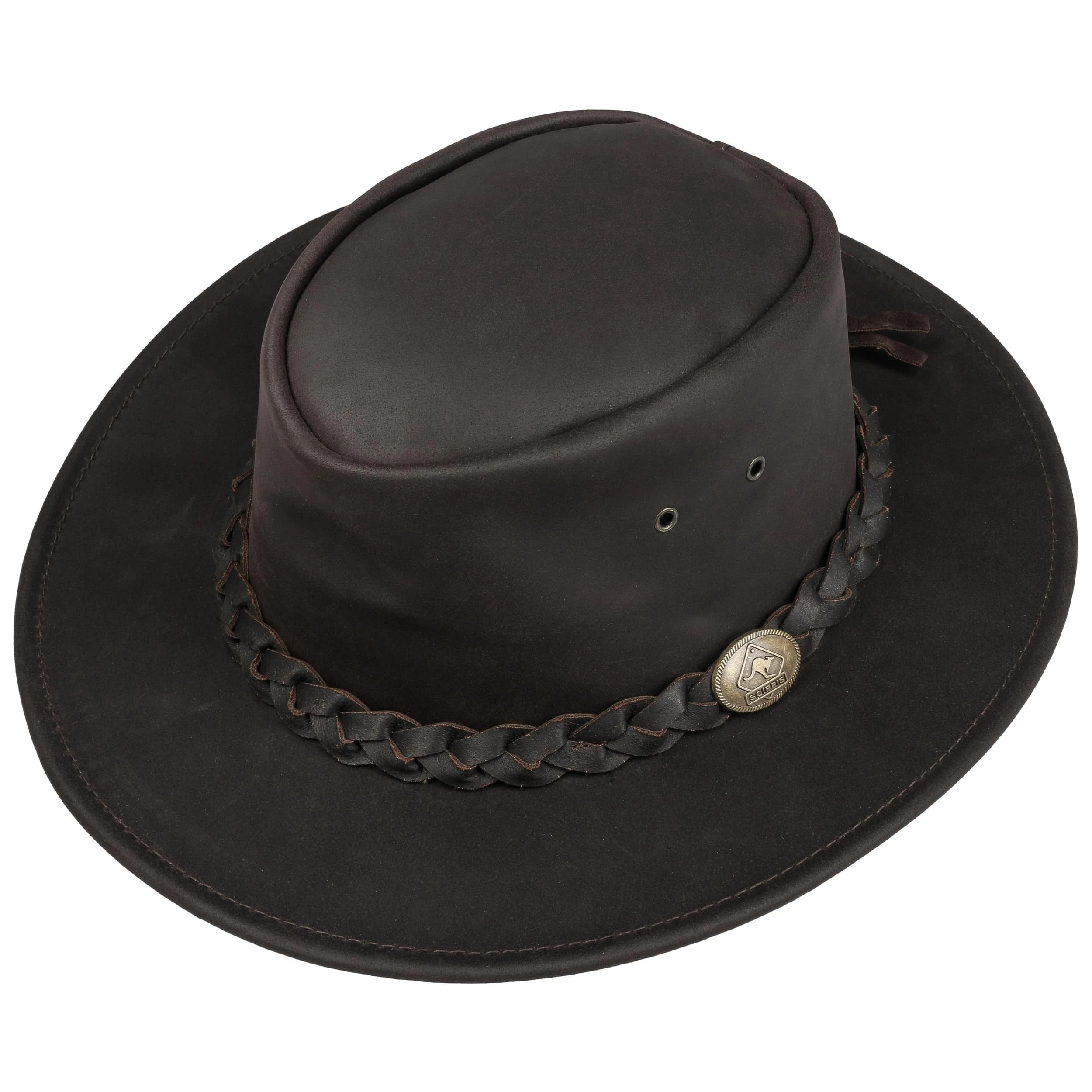 Als absolut robust und outdoortauglich erweist sich dieser Rindslederhut von Scippis mit geflochtenem Garniturband.