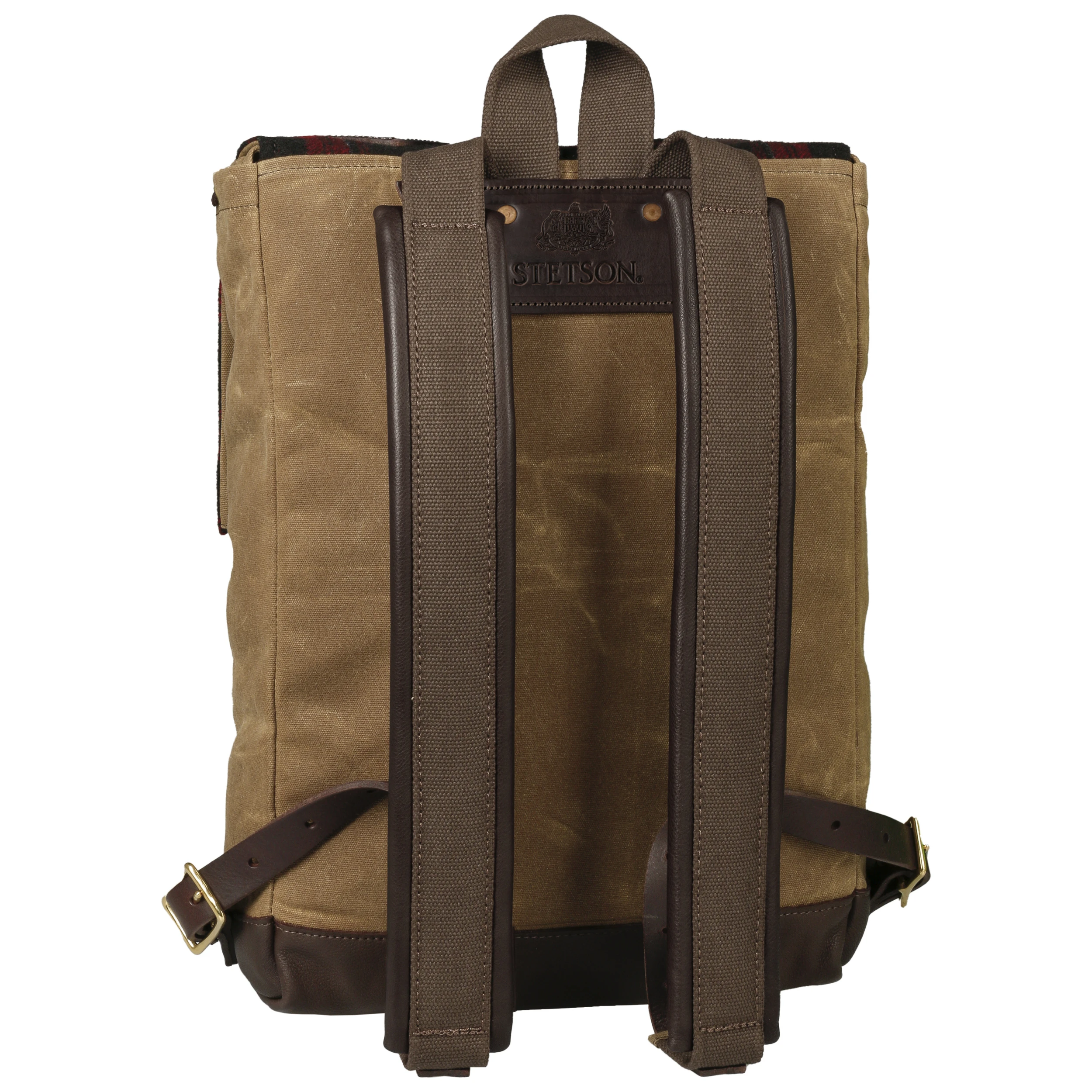 Der edle Kanu-Rucksack von Stetson besteht aus einer Kombination der hochwertigen Naturmaterialien Baumwolle, Rindsleder und Schurwolle.