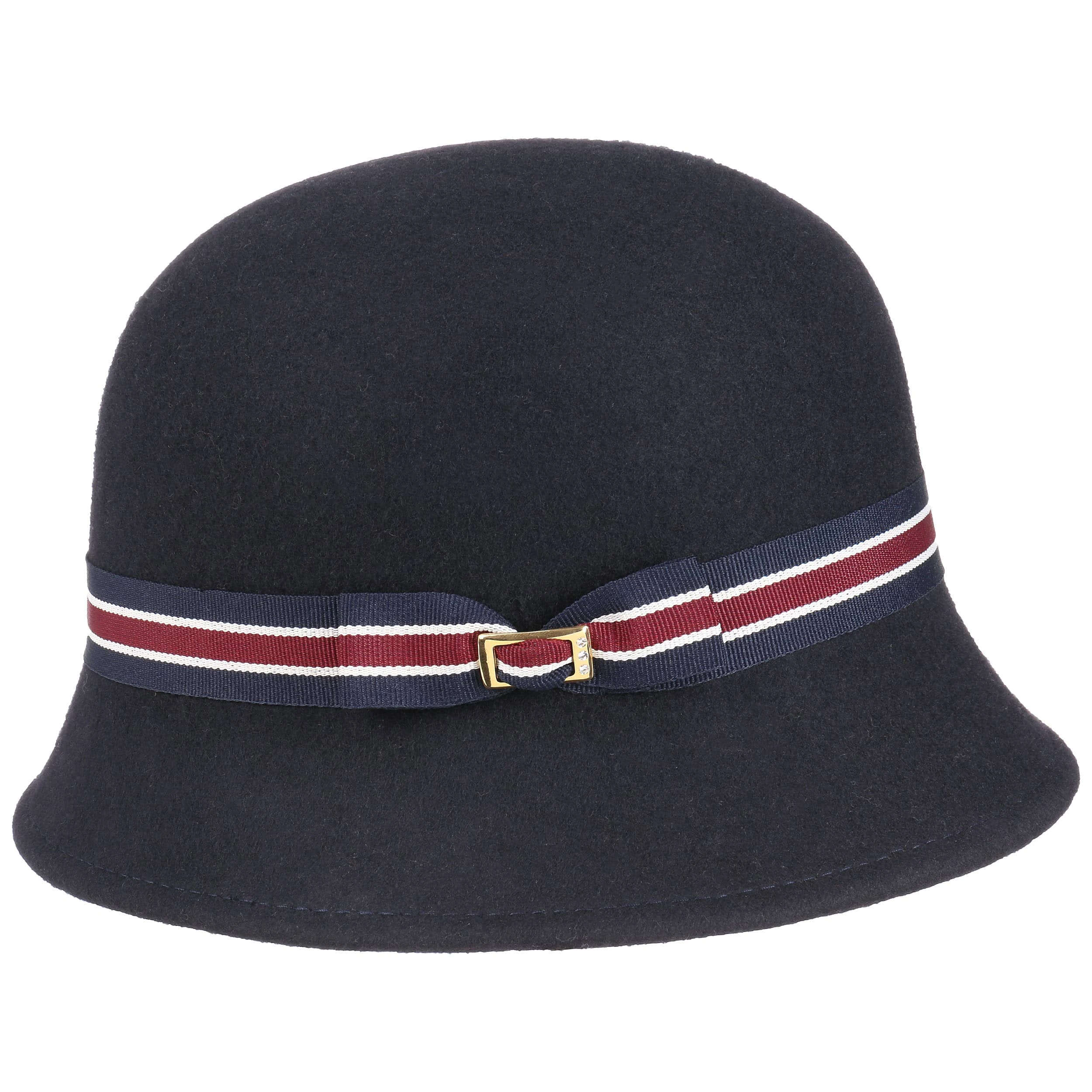 Das Garniturband in maritimen Farben macht Lust aufs Meer. Natürlich dürfen auch echte Landratten den Glockenhut ausführen. Der robuste Wollfilz schützt den Kopf vor Wasserspritzern und vor grellen Sonnenstrahlen. Im Regen macht der knautschbare Filzhut daher einen genauso guten Eindruck wie bei Sonnenschein.