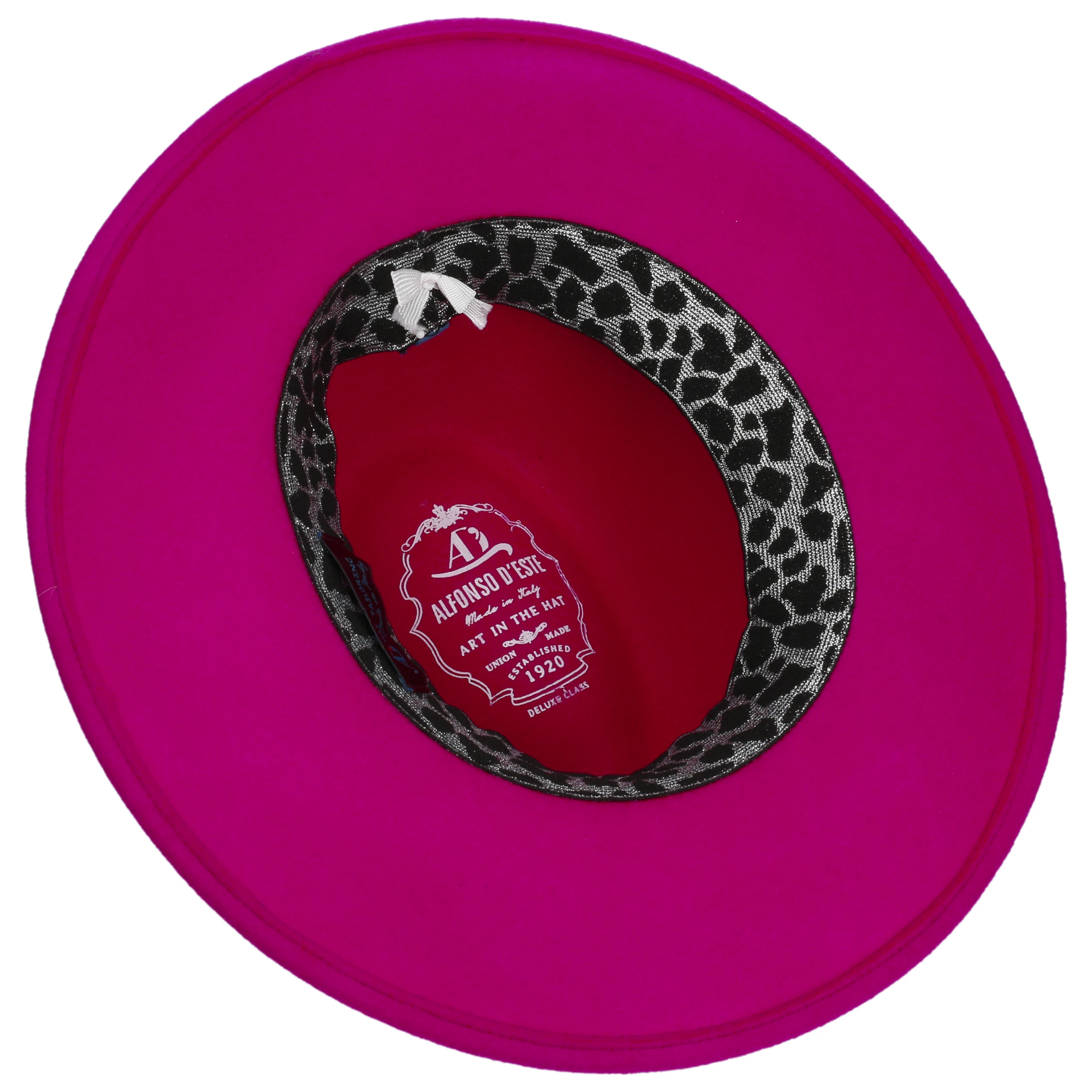 Eine aufwendig gestaltete Garnitur mit mehreren Bändern in verschiedenen Farben und Materialien ergänzt den außergewöhnlichen Look. Für perfekten Sitz ist das Modell von Alfonso d´Este mit einem Stretchfutterband ausgestattet.