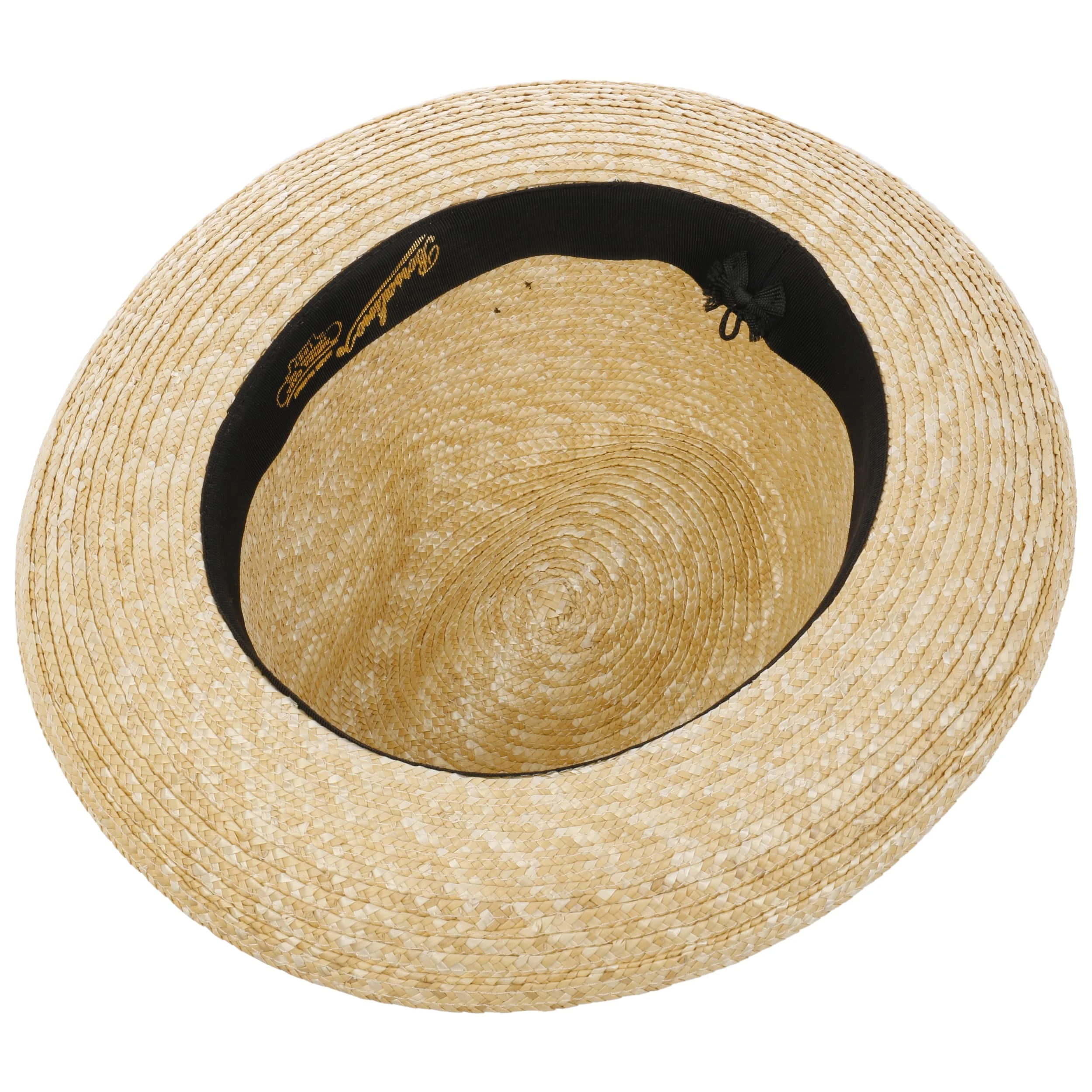 Der Weizenstrohhut der Marke Borsalino ist durch die Verwendung von 100% Weizenstroh angenehm leicht und atmungsaktiv.