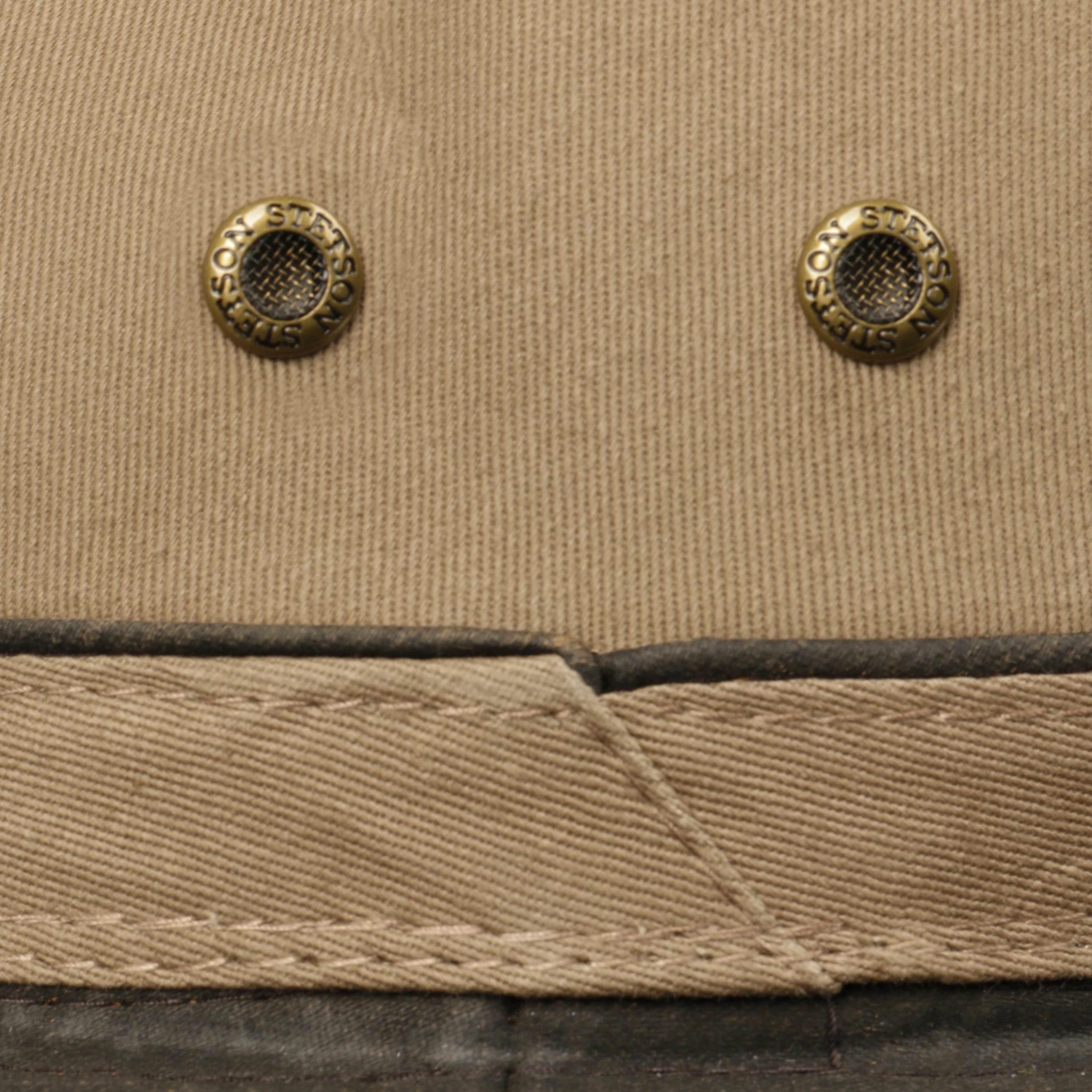 Für Outdoorfans ist der Stetson gemacht: Baumwolle in verwaschenem Look und die Krempe in Lederoptik sowie metalleingefasste Luftösen zeigen eindeutig, dass der Traveller für Unternehmungen im Freien gemacht ist.